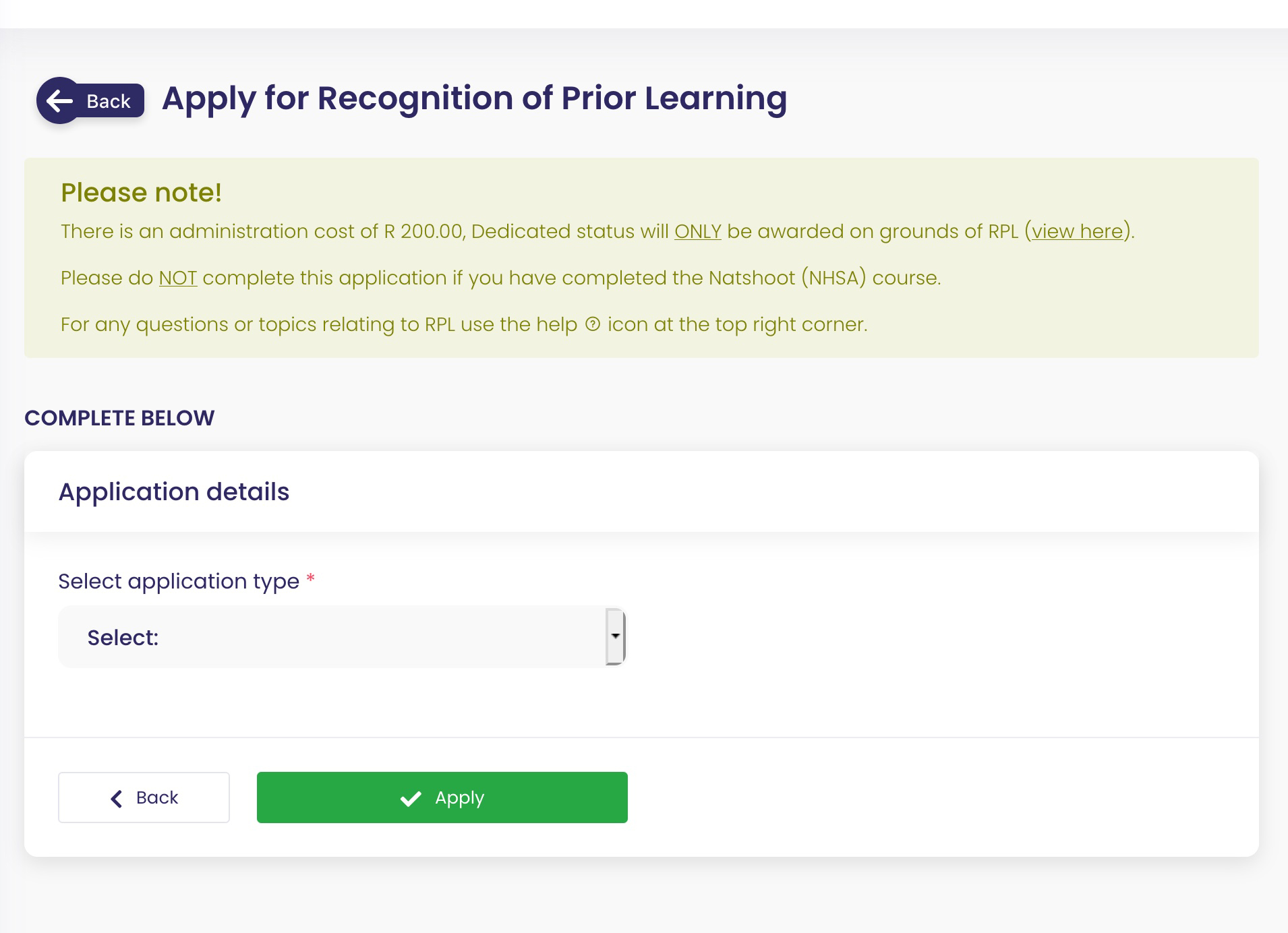 APPLY TO BE AWARDED DEDICATED STATUS BY WAY OF RECOGNITION OF PRIOR LEARNING (RPL)