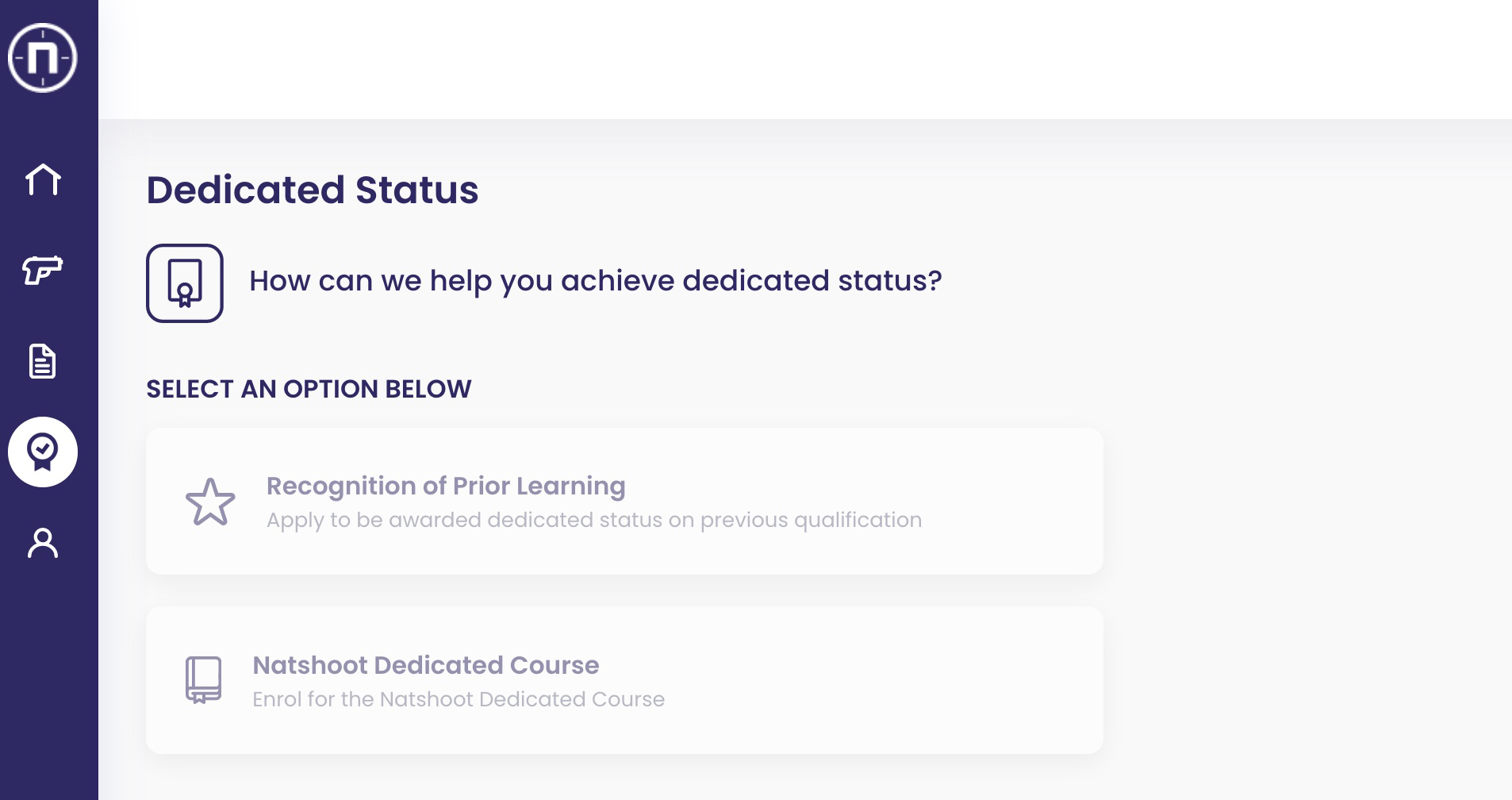 2. Members apply to enrol for the dedicated course(s) of the member’s choice on the member’s Personal Natshoot Member Portal at the blue icon; Dedicated Status – follow the instructions on the screen.