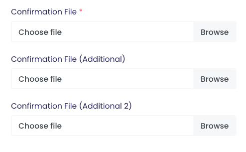 Step 5: Attach confirmation documentation at the Browse buttons at the bottom of the page just above the submit button.