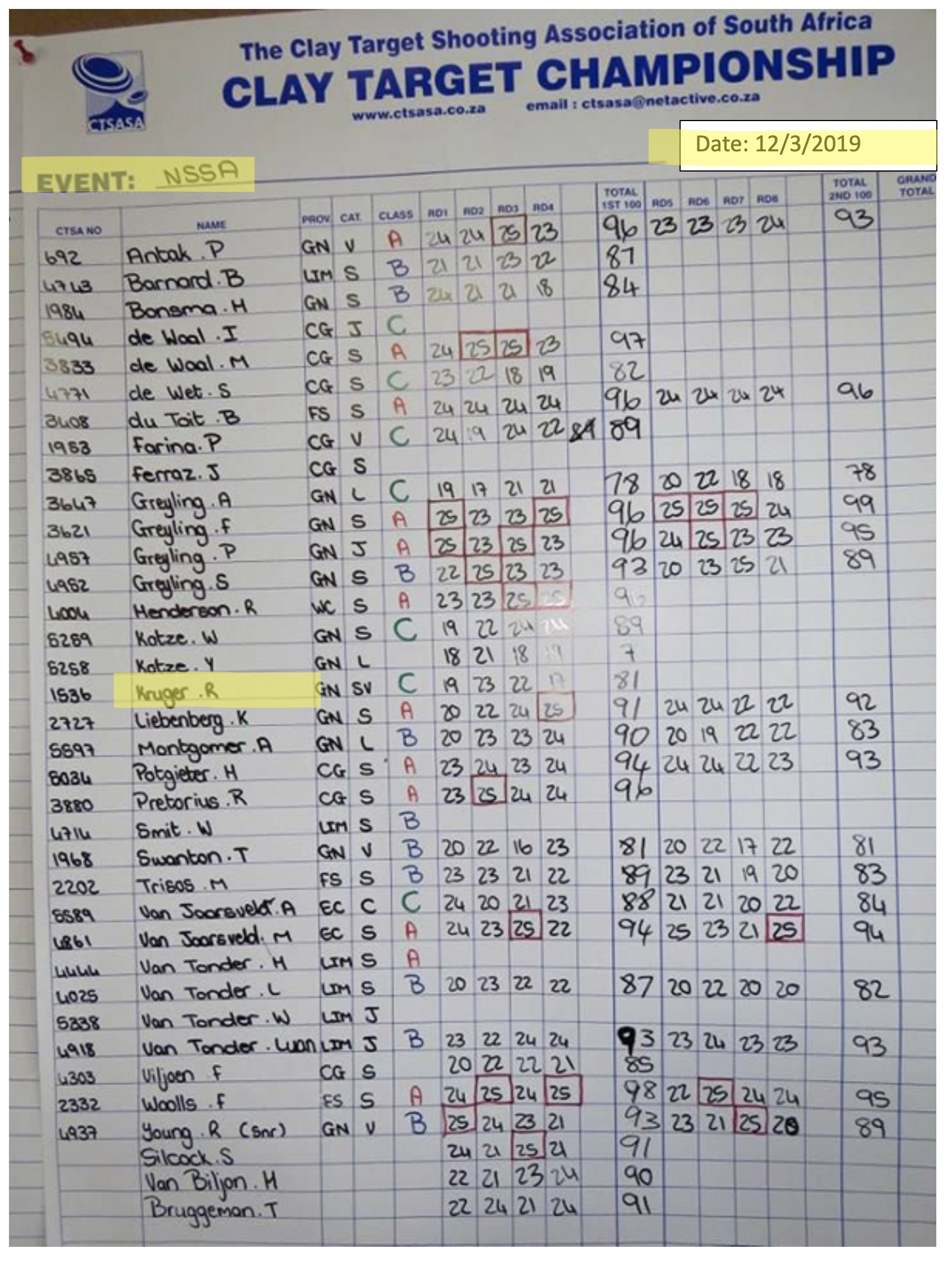 6.3 Only postal scores entered on or before 30 November annually for targets shot in the specific grading year (1 December to 30 November), will be taken into account for that year’s Marksman Grading. Thus scores of targets shot on, i.e., 15 November 2018, and of which the scores are only entered on 12 December 2018, will not be taken into account for Marksman Grading for 2018 or for 2019 because these were not shot in the year for which the targets for the 2019 grading will be calculated.