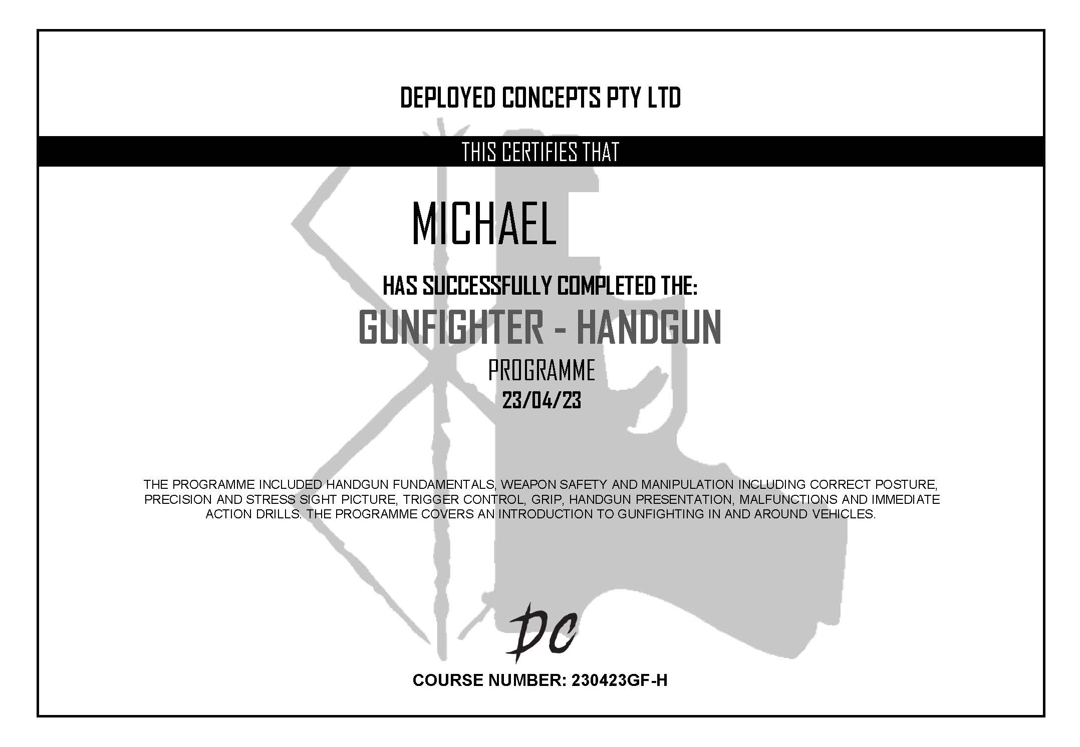 10m CENTER-FIRE HANDGUN EXERCISE