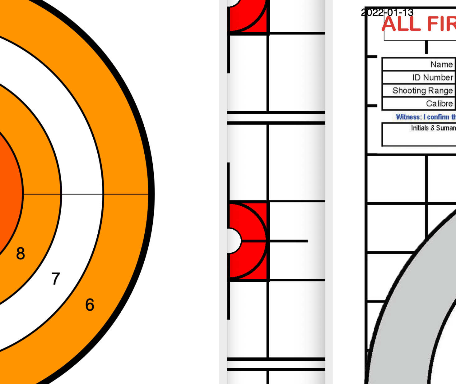 COURSE OF FIRE: Two shots per small target printed on one A4 page shot at 10m with score counting out of 100points